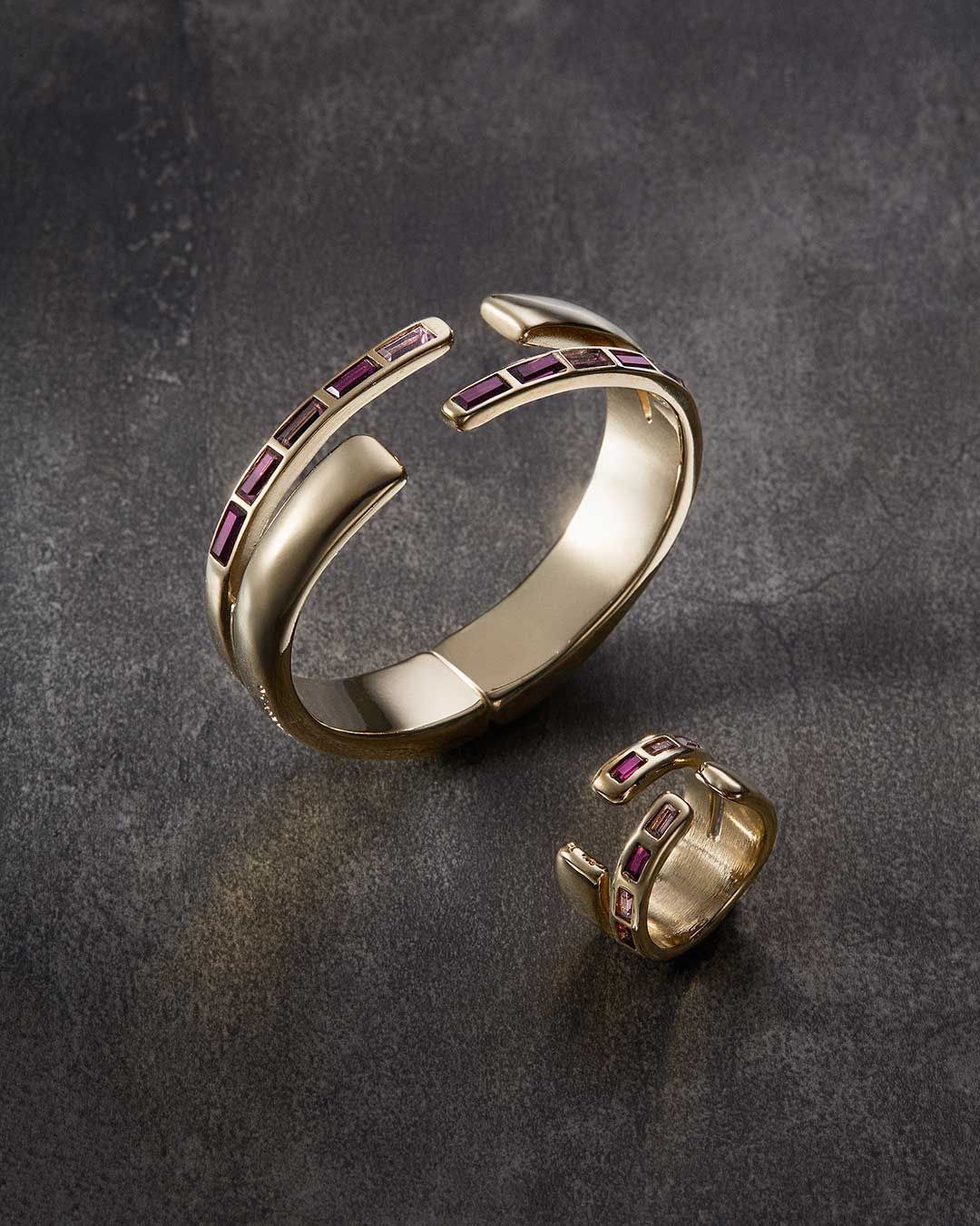 Een van de meest opvallende kenmerken van UNOde50 is de onconventionele esthetiek van hun ontwerpen. Elk stuk straalt een unieke energie uit, met een combinatie van ambachtelijk vakmanschap en eigentijdse flair. Hun collecties variëren van edgy en gedurfd tot subtiel en verfijnd, waardoor er voor elk individu een perfect stuk te vinden is.