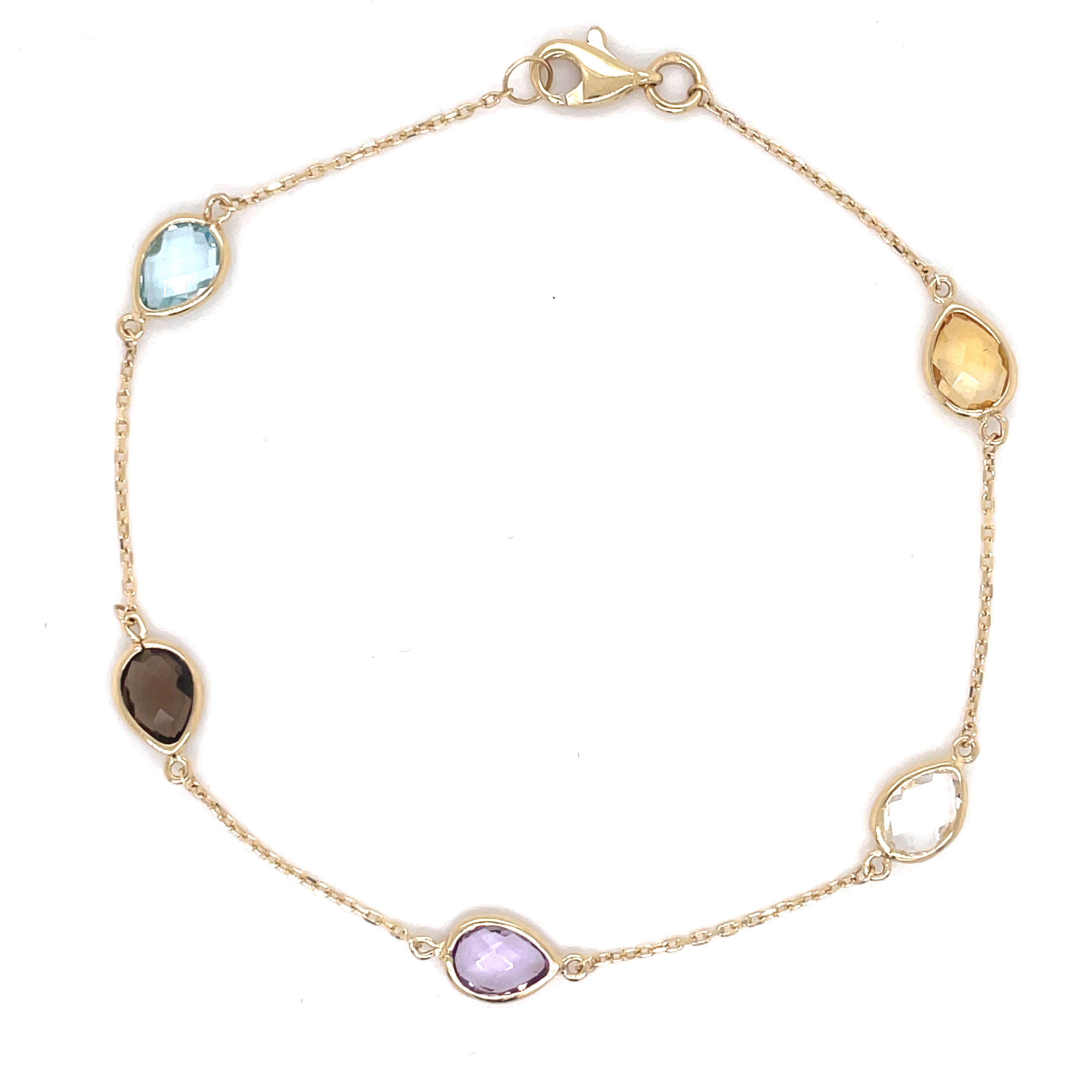 Geelgouden armband met topaas, citrien, amethist, rookkwarts en bergkristal