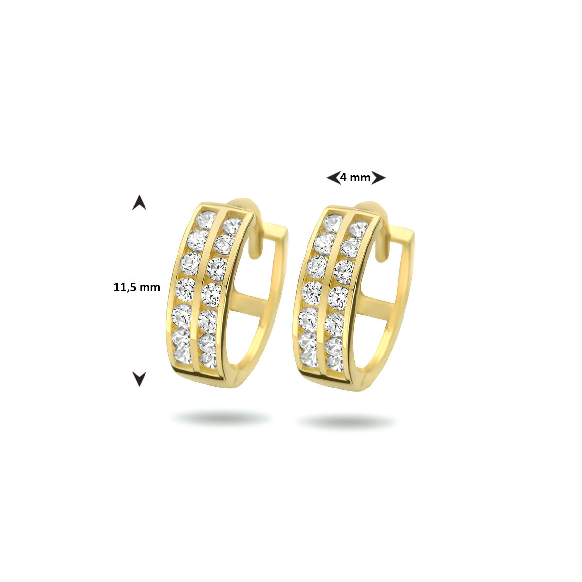 9k Geel kleurigklapoorringen met zirkonia. De oorringen hebben een afmeting van 11.5x4mm.