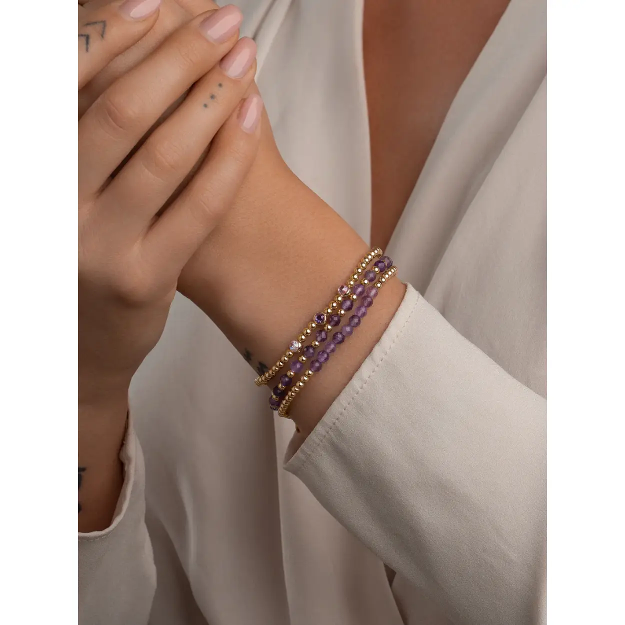 De Interstellar Amethyst armband is perfect voor alledaags dragen. Geïnspireerd op de stand van de sterren en planeten in de cosmos, deze collectie viert onze fascinatie met het heelal. Draag de armband alleen óf stack deze met andere Sparkling armbanden voor een statement look.