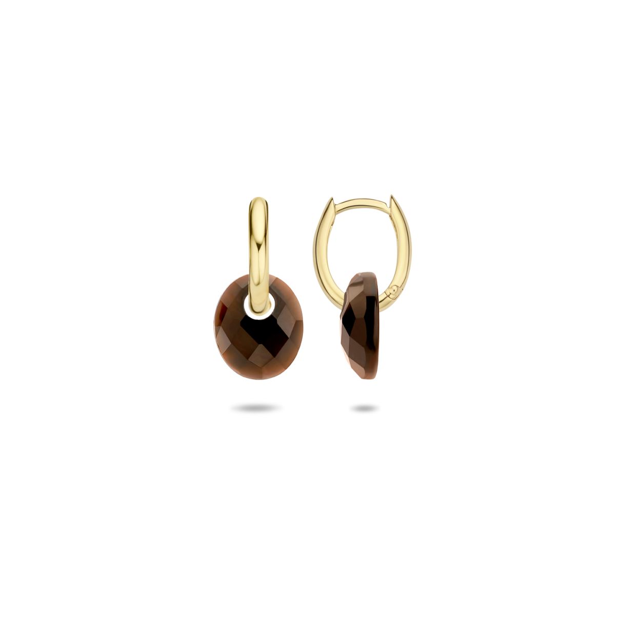 Let the joy ring out from your cheekbones. Deze natuurstenen Blush oorbedels  800MSQM  zijn ware eye-catchers. Deze oorbedels zijn facet geslepen uit smokey quartz en hebben een lichtelijk transparante donkerbruine kleur. Deze oorbedels zijn een mooie combinatie met de ovale blush creolen met referentie 7117YGO.