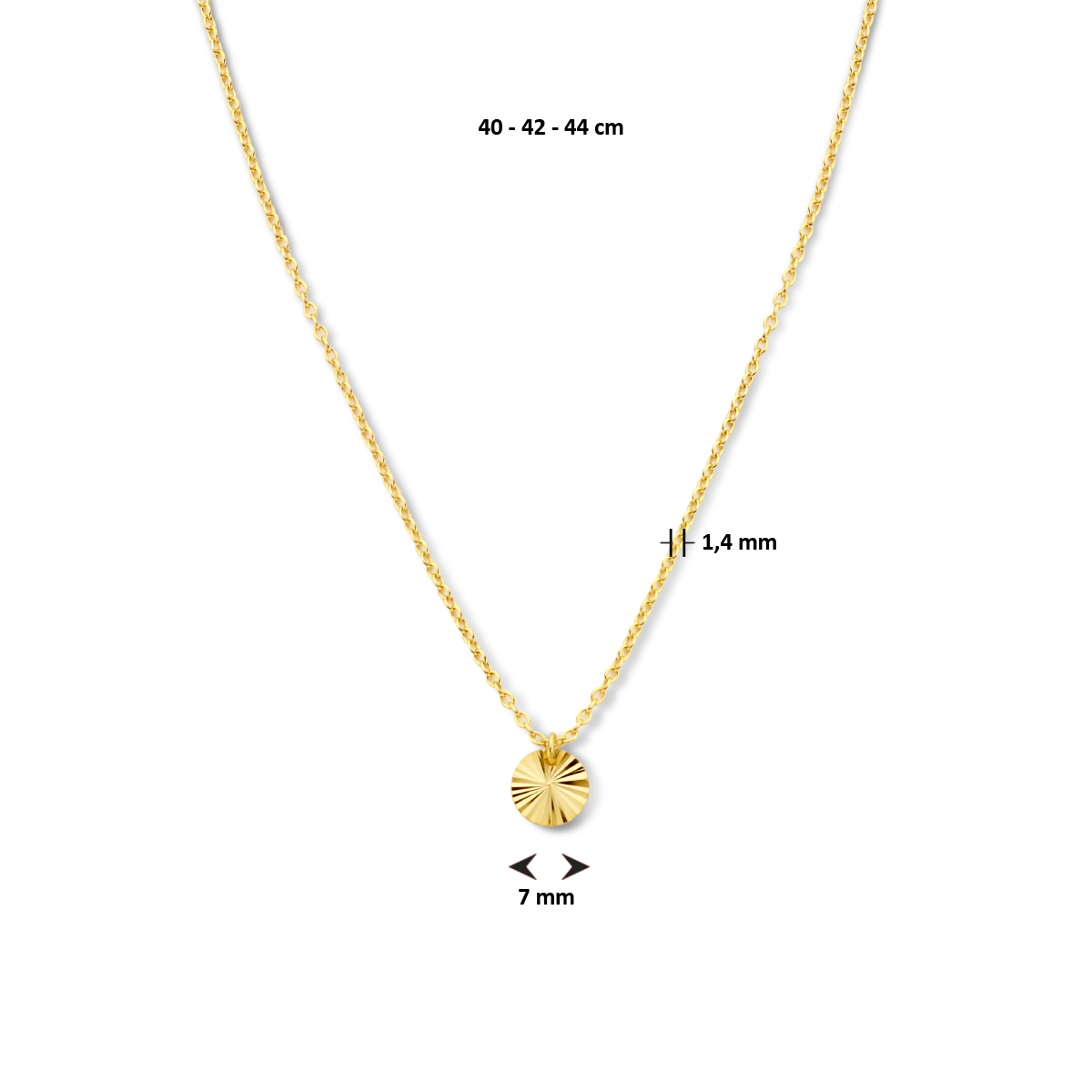 Geelgoud op 925 zilveren collier uitgevoerd met een ronde hanger met een gediamanteerde afwerking. Het collier heeft draaglengtes van 40, 42 en 44cm. De hanger heeft een diameter van 7mm. Geen garantie op plating.
