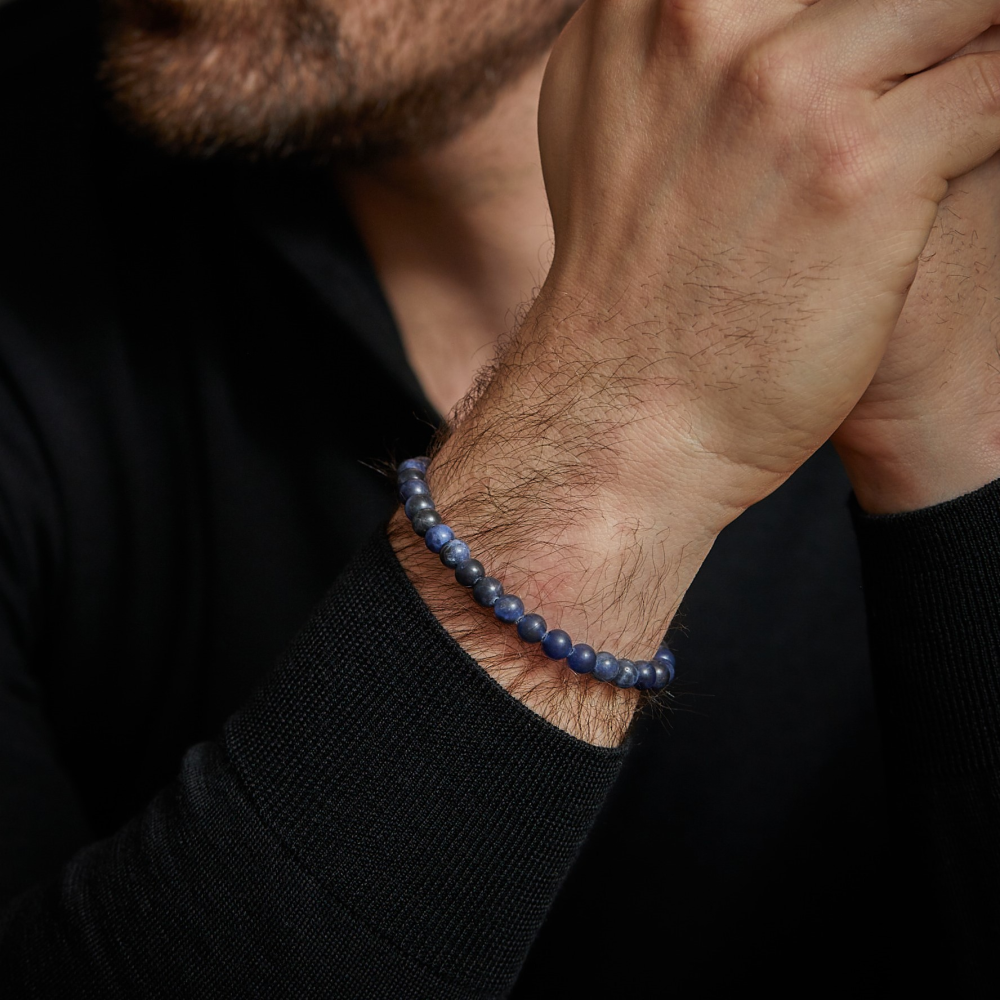 Natuurstenen armband van het merk Rebel & Rose. De armband heeft een hoogwaardige elastische stretch koord, blauwe 6mm Sodaliet natuurstenen beads en RVS slotje
