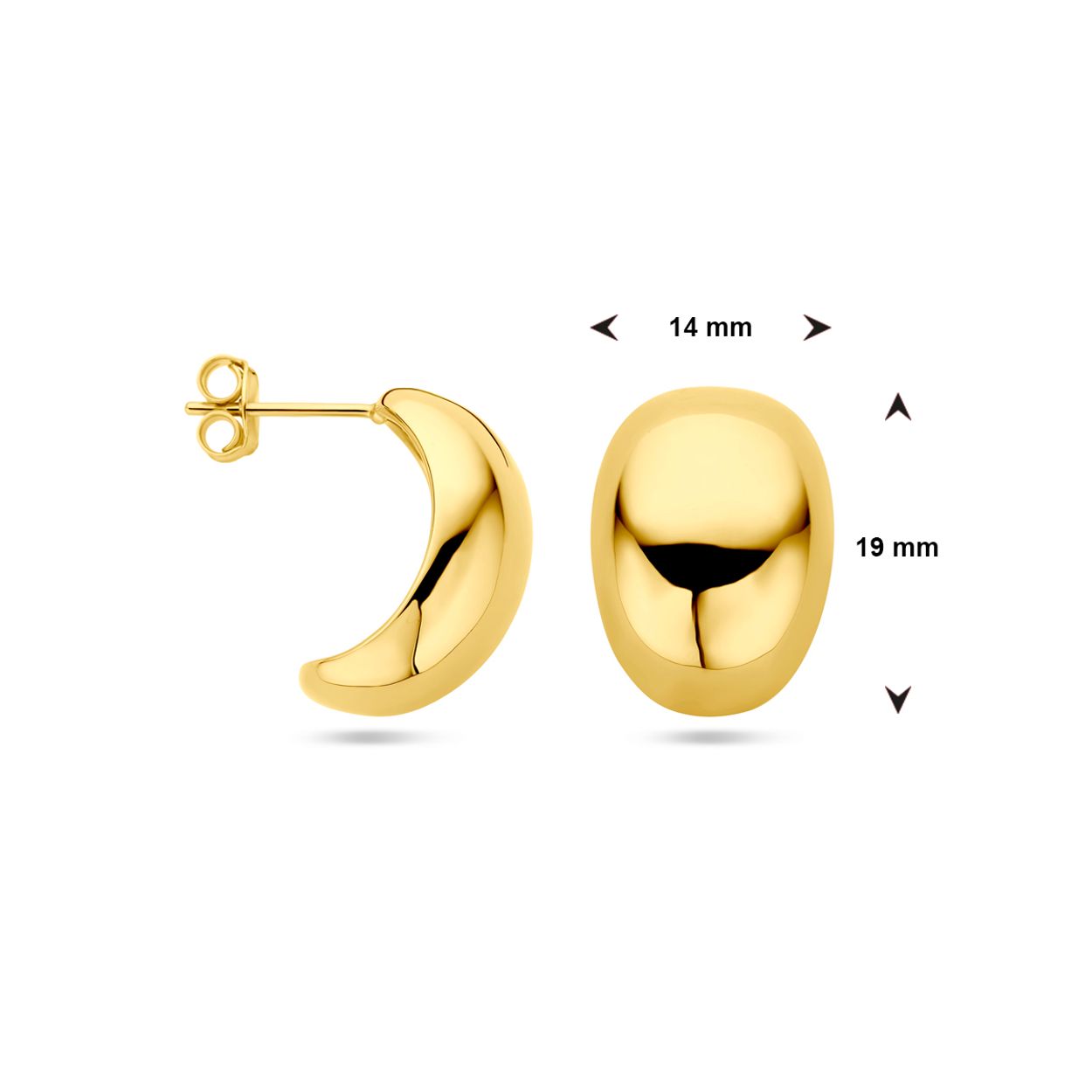 Geelgoud op 925 zilveren oorknoppen met een afmeting van 19x14mm. Geen garantie op de plating.