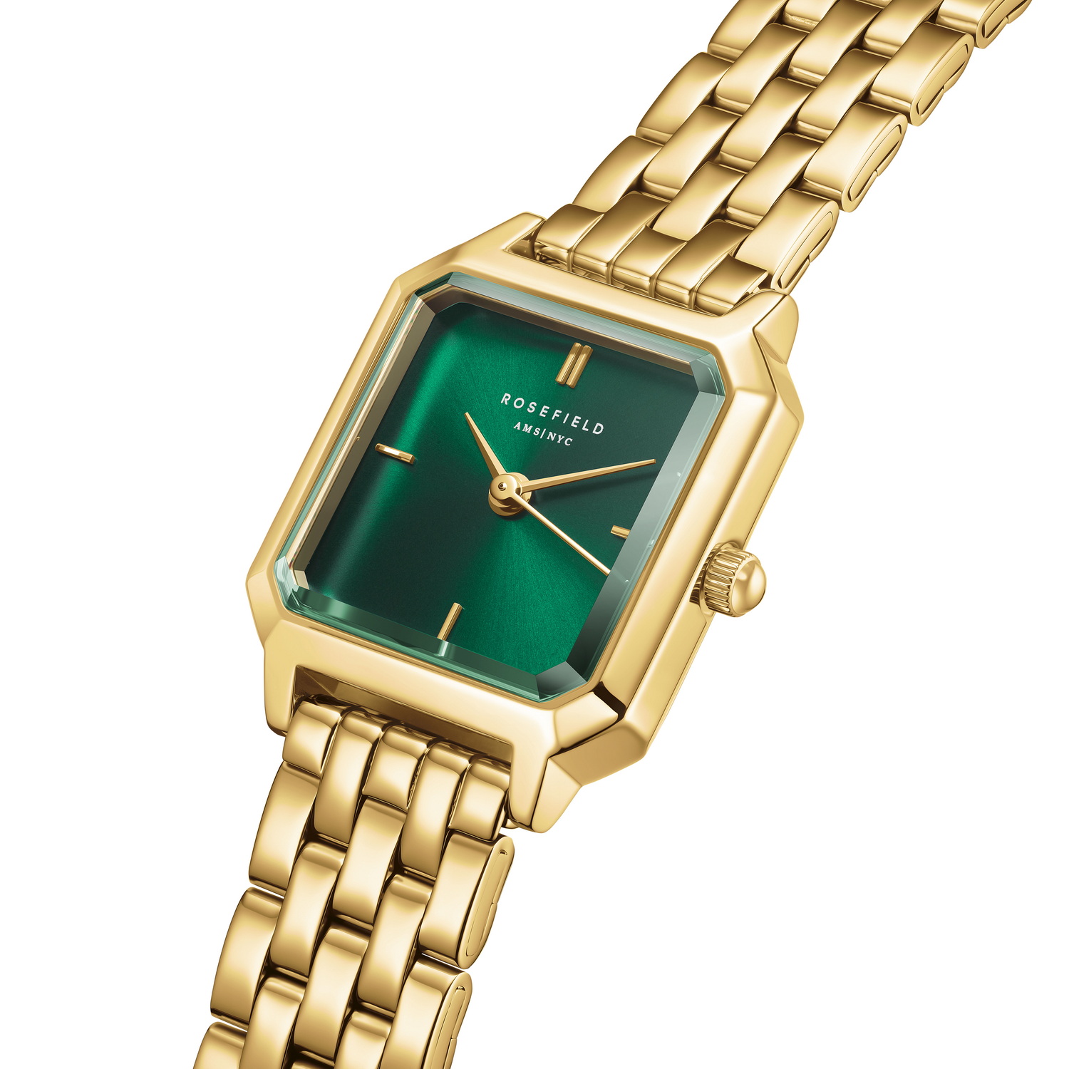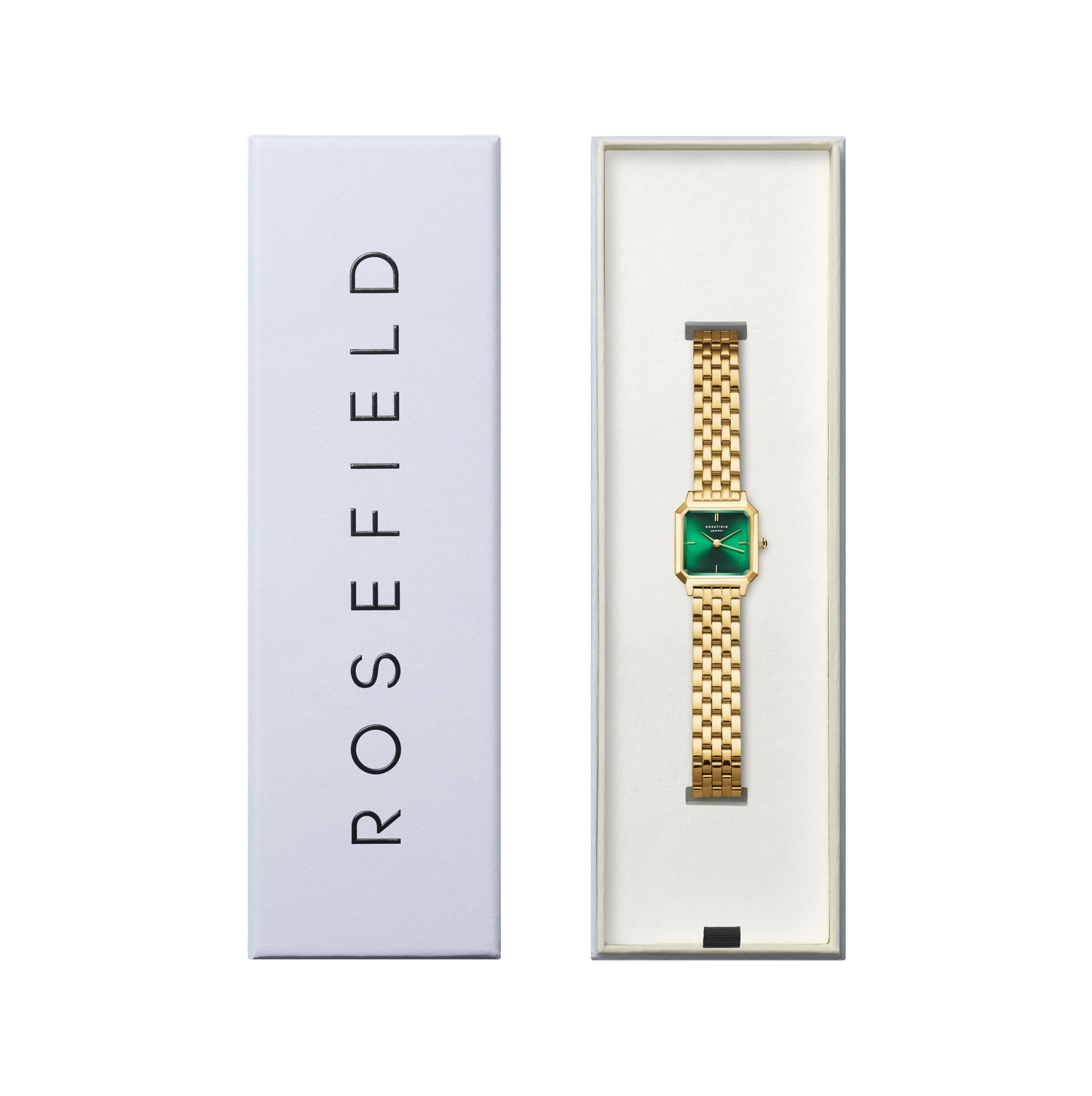 ROSEFIELD THE BOXELLE EMERALD SUNRAY (Model BEGSG-B05) is een stijlvolle polshorloge met een goudkleurige roestvrijstalen band. Het horloge heeft geen datumaanduiding en is geen smartwatch. Met een kastgrootte van 19,5 mm is het een elegant accessoire. Draag het als een verfijnde toevoeging aan zowel casual als formele outfits voor een luxe uitstraling.