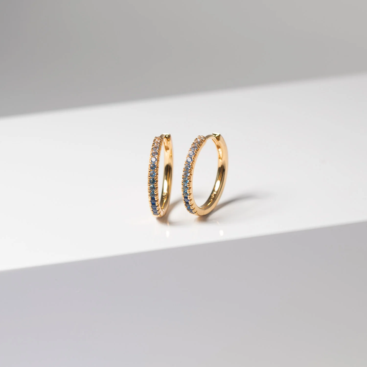 Oorbellen gemaakt van 18 karaats verguld 925 sterling zilver, gepolijst oppervlak en facetgeslepen gradiënttonen van blauwe en witte zirkonia