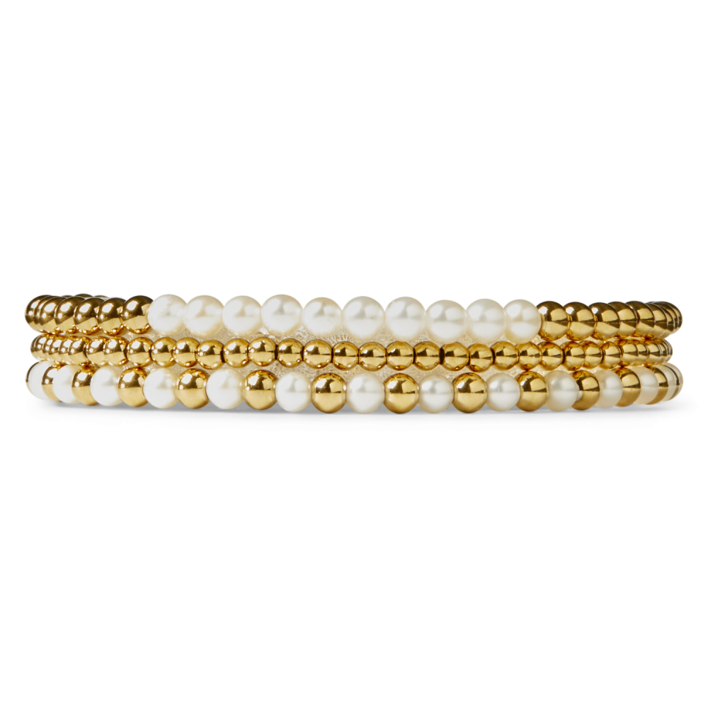 Armband van het merk Rebel & Rose. De armband heeft een hoogwaardige elastische stretch koord, met 3mm kralen van RVS 18kt ion-gold plated.