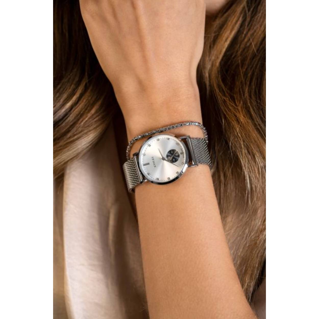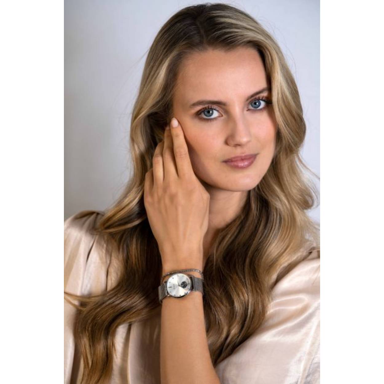 ZINZI Roman horloge zwarte wijzerplaat en kast met rosé wijzers zwarte stalen mesh band